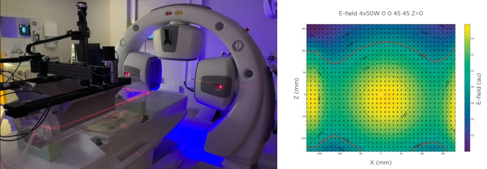 Igual que en el sistema ALBA ON 4000D, Med-Logix dispone de herramienta de medición del campo eléctrico del haz 3D de la antena de ALBA 4D. Se diseñó para comprobar y verificar el funcionamiento de la antena de hipertermia en fantoma líquido equivalente a músculo. Esto permite la evaluación cualitativa del haz 3D de la antena en cuanto a la zona de foco geométrico, la capacidad de dirección focalizada, la dirección del foco y la verificación cualitativa de la simulación de la planificación del tratamiento.